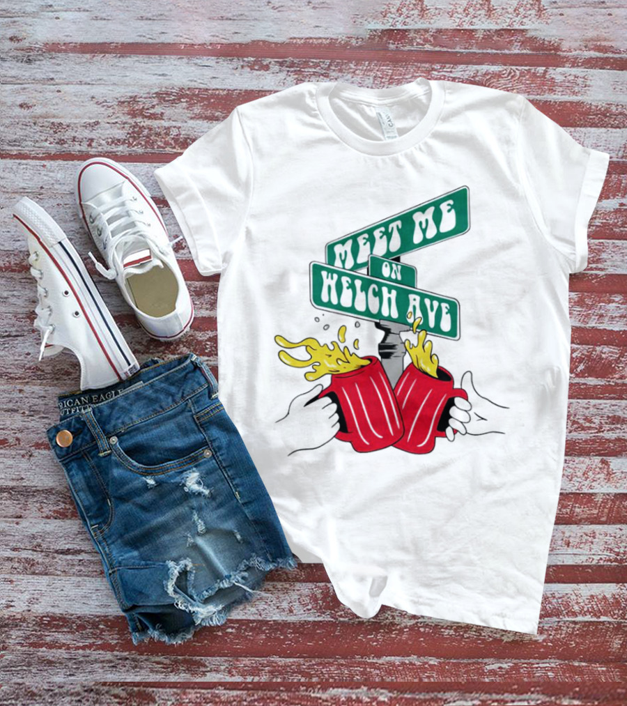 Meet Me On Welch Ave Street Sign With Cheers Beer Mugs T-Shirt