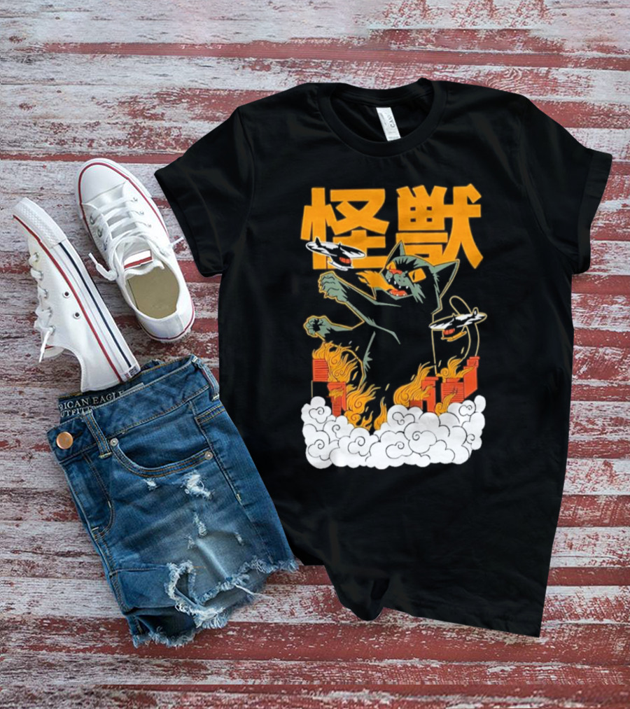 Kaiju No 8 Monster Cat Attack With Helicopters And Flames T-Shirt