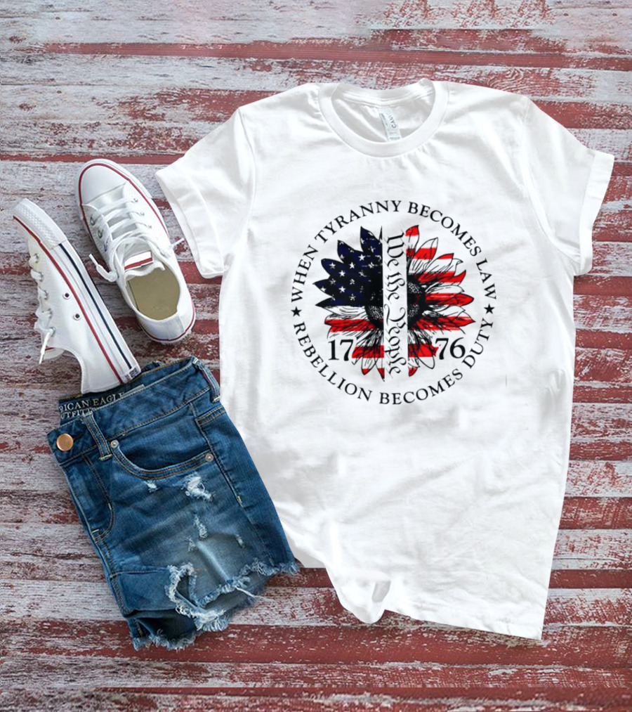 When Tyranny Becomes Law Rebellion Becomes Duty We The People 1776 American Flag Sunflower T-Shirt