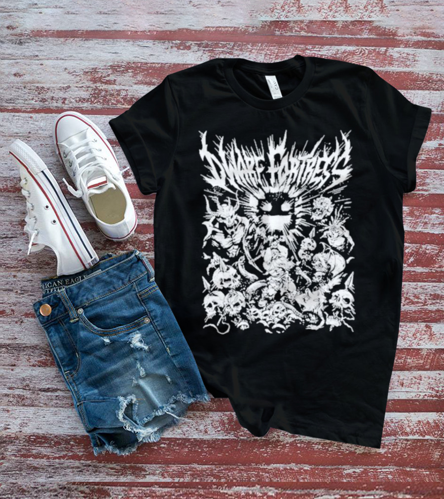 The Dwarf Fortress Metal Skulls and Creatures Shirt offers a regular fit. Made from 100% ring-spun cotton that is pre-shrunk to help maintain size and shape after washing. Features reinforced construction details for durability. Available in U.S. standard sizes S-5XL to accommodate various body types.