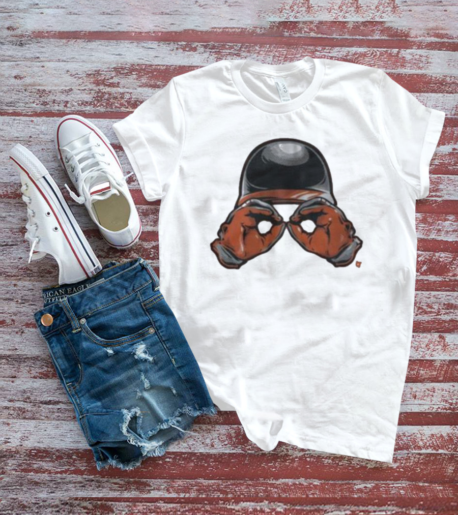 Baltimore Orioles Helmet And Gloves Holding Binoculars T-Shirt