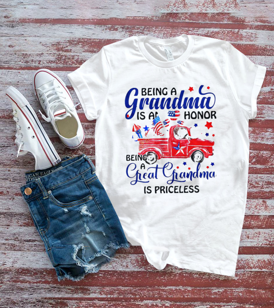 Being A Grandma Is An Honor Being A Great Grandma Is Priceless With Patriotic Red Truck And American Flags T-Shirt