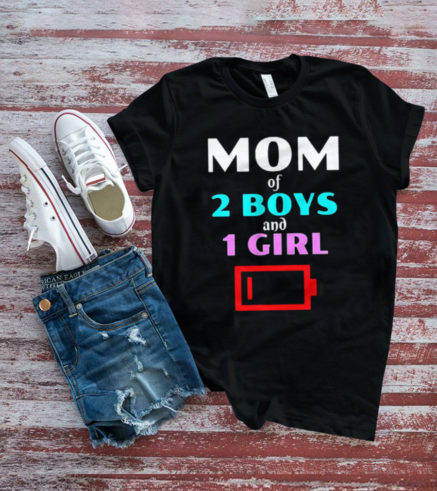 Mom Of 2 Boys And 1 Girl Low Battery Red Warning T-Shirt