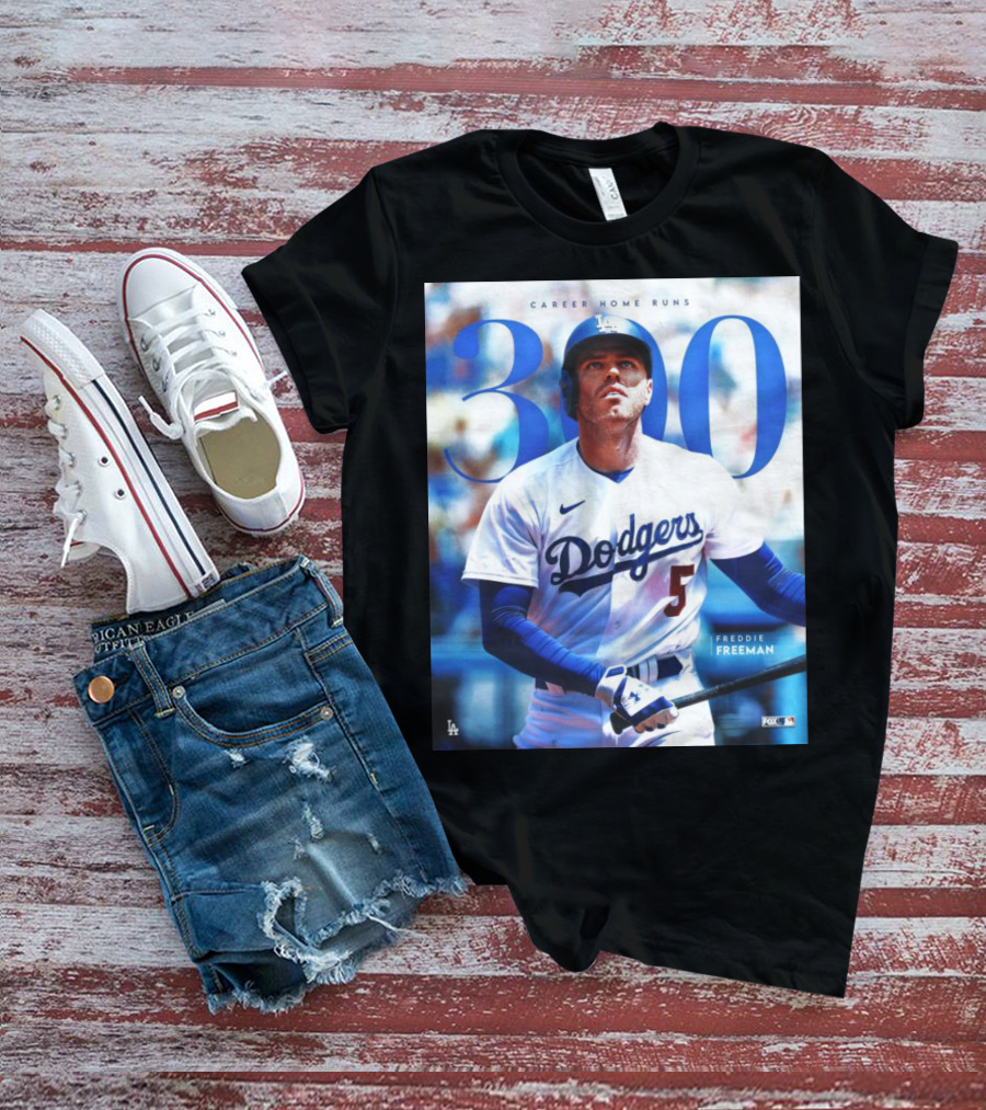 Dodgers Freddie Freeman 300 Career Home Runs Achievement Image With MLB T-Shirt