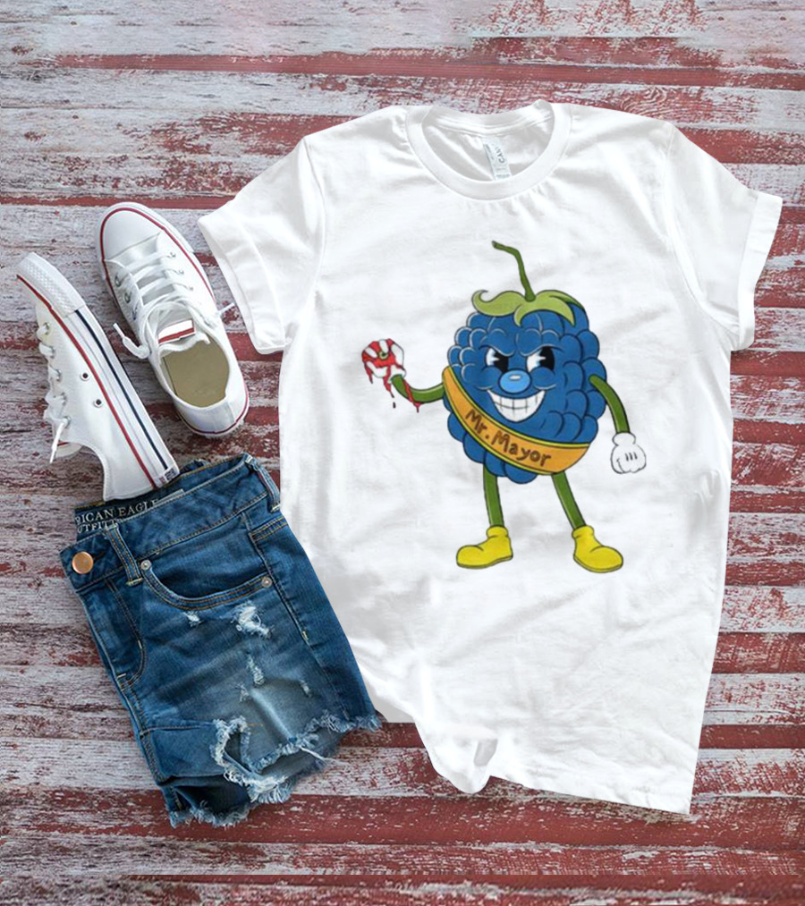Blueberry Mr Mayor Holding Bleeding Hand Cartoon Character T-Shirt