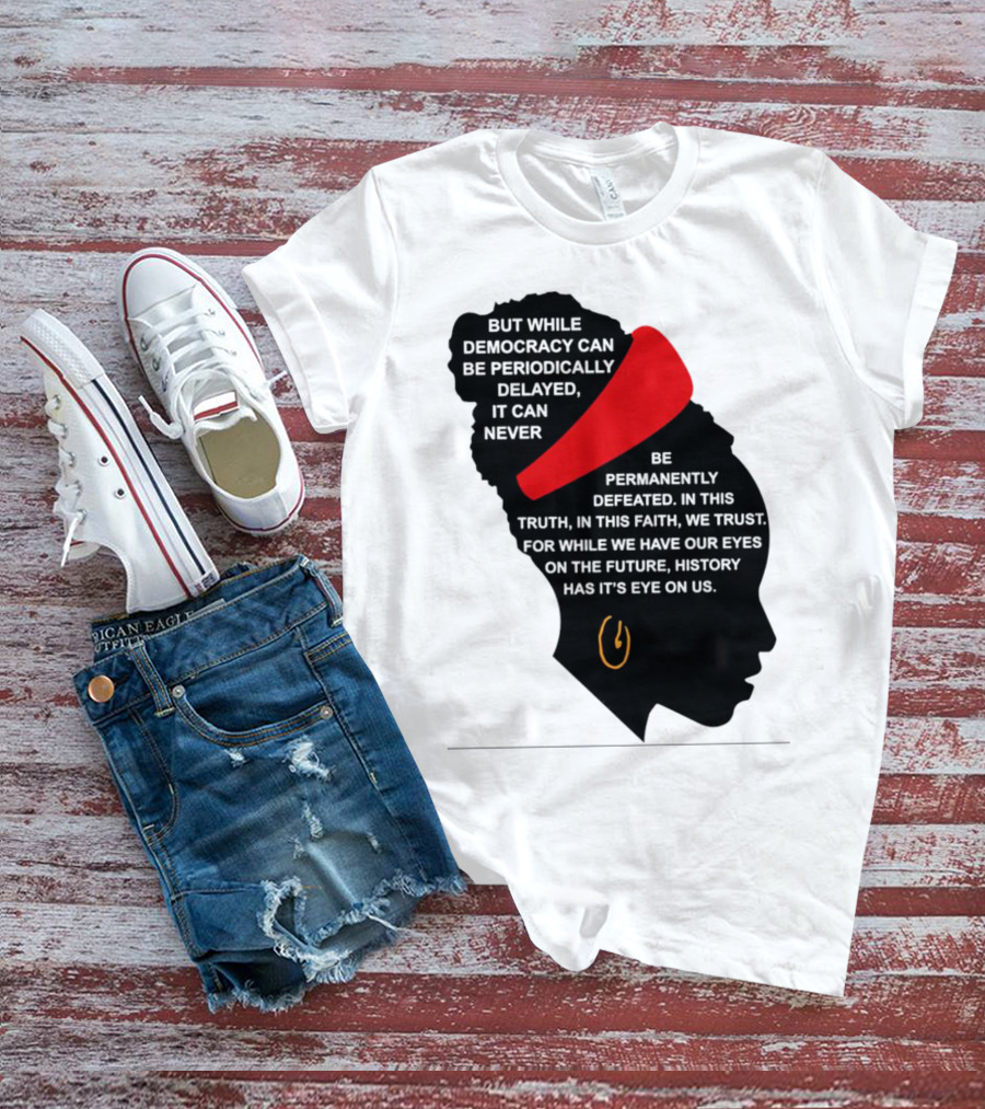 Amanda Gorman Democracy Periodically Delayed Never Permanently Defeated Silhouette With Red Headband T-Shirt