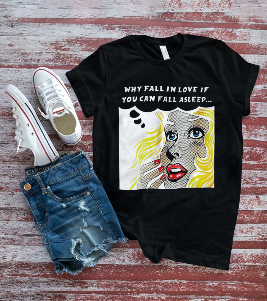 Why Fall In Love If You Can Fall Asleep Pop Art Comic Style Image With Blonde Woman T-Shirt