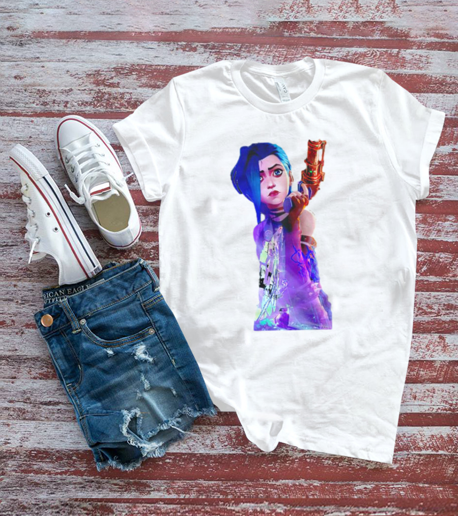 Arcane Jinx League Of Legends Character With Blue Hair And Toy Gun T-Shirt