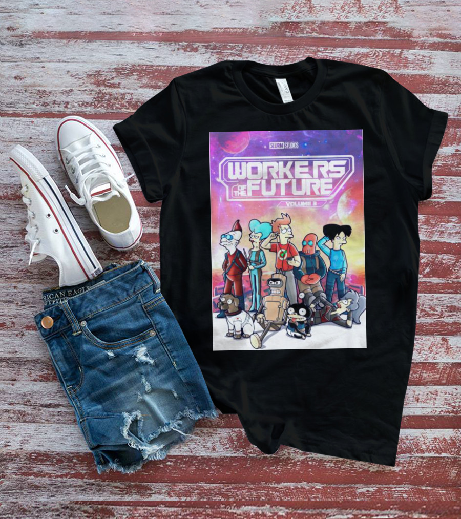 SLURM STUDIOS Workers Of The Future Volume 3 Futurama Characters Retro Futuristic T-Shirt