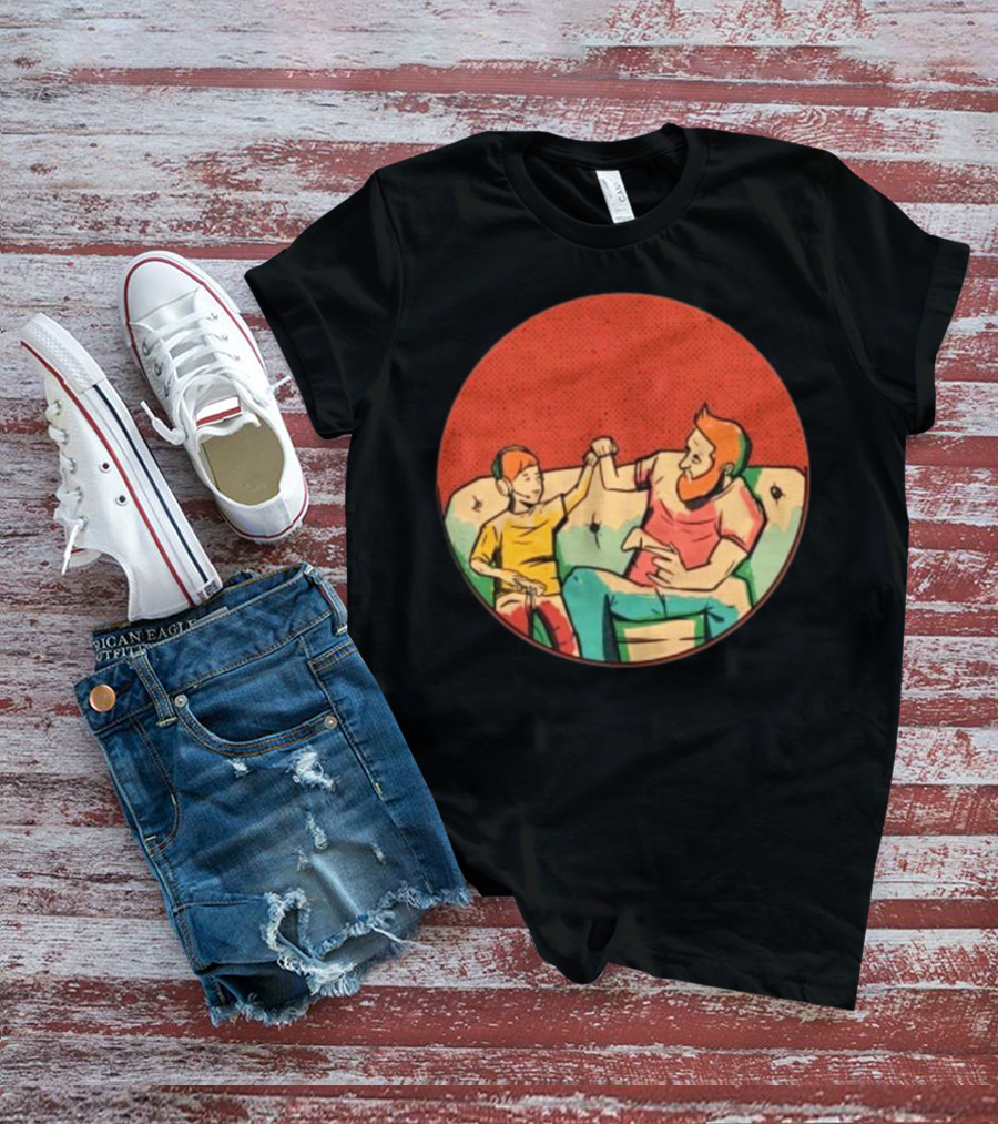 The Father and Son Gaming Bond on the Couch Shirt offers a regular fit. Made from 100% ring-spun cotton that is pre-shrunk to help maintain size and shape after washing. Features reinforced construction details for durability. Available in U.S. standard sizes S-5XL to accommodate various body types.