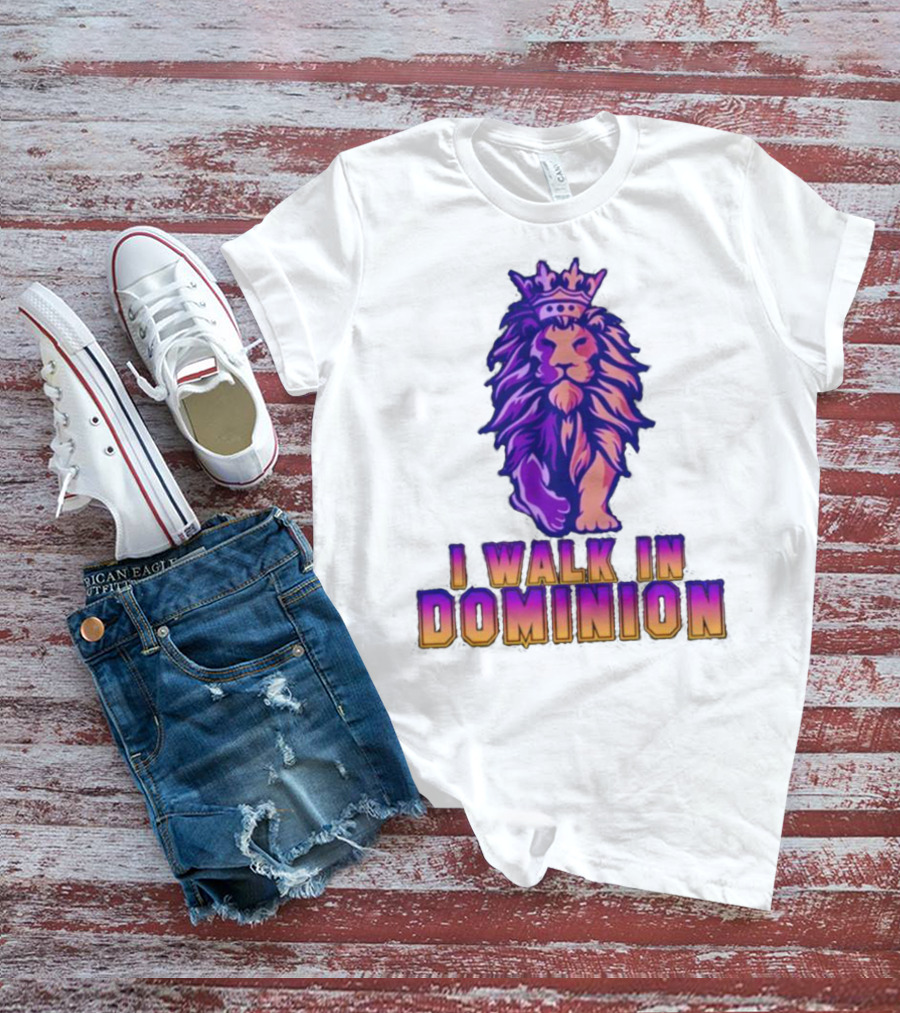 The I Walk in Dominion Crowned Lion Shirt offers a regular fit. Made from 100% ring-spun cotton that is pre-shrunk to help maintain size and shape after washing. Features reinforced construction details for durability. Available in U.S. standard sizes S-5XL to accommodate various body types.