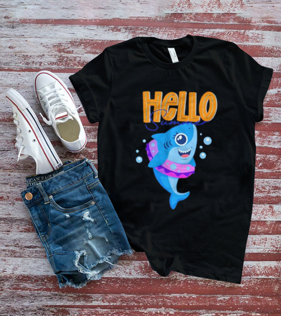 Hello Summer Shark With Swim Ring And Bubbles T-Shirt