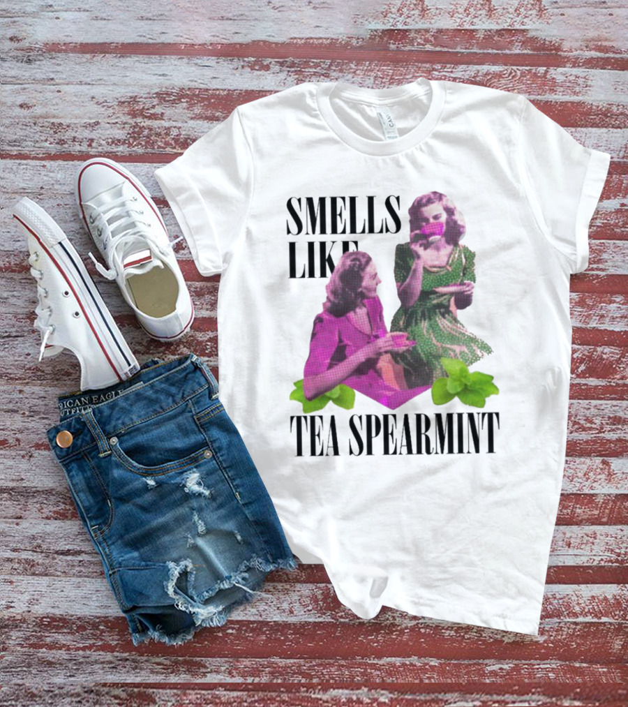 Smells Like Tea Spearmint Retro Women Green Pink Cups T-Shirt