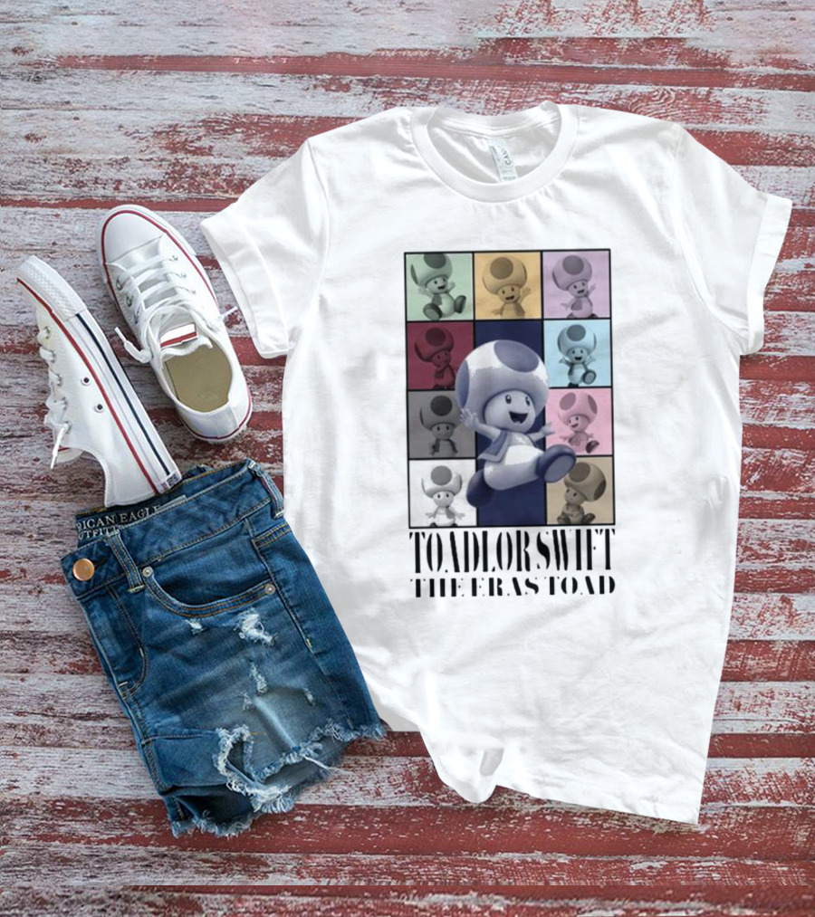 The Toadlor Swift The Eras Toad Multicolor Pop Art Toad Shirt offers a regular fit. Made from 100% ring-spun cotton that is pre-shrunk to help maintain size and shape after washing. Features reinforced construction details for durability. Available in U.S. standard sizes S-5XL to accommodate various body types.