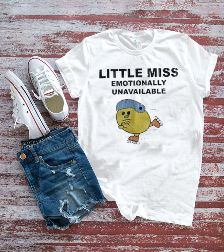The LITTLE MISS EMOTIONALLY UNAVAILABLE ROLLER SKATING CHARACTER Shirt offers a regular fit. Made from 100% ring-spun cotton that is pre-shrunk to help maintain size and shape after washing. Features reinforced construction details for durability. Available in U.S. standard sizes S-5XL to accommodate various body types.