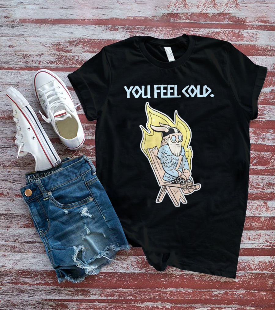 Valheim Merch Store You Feel Cold Viking Character Sitting With Flame Background T-Shirt