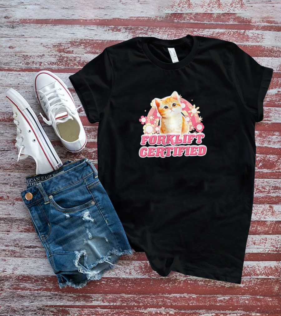 Cat Forklift Certified Cute Floral Pink T-Shirt