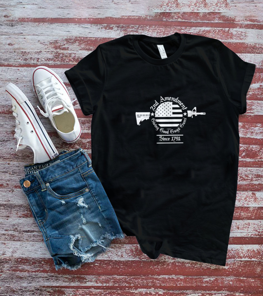 2nd Amendment Giving Good Guys Guns Since 1791 American Flag Rifle T-Shirt