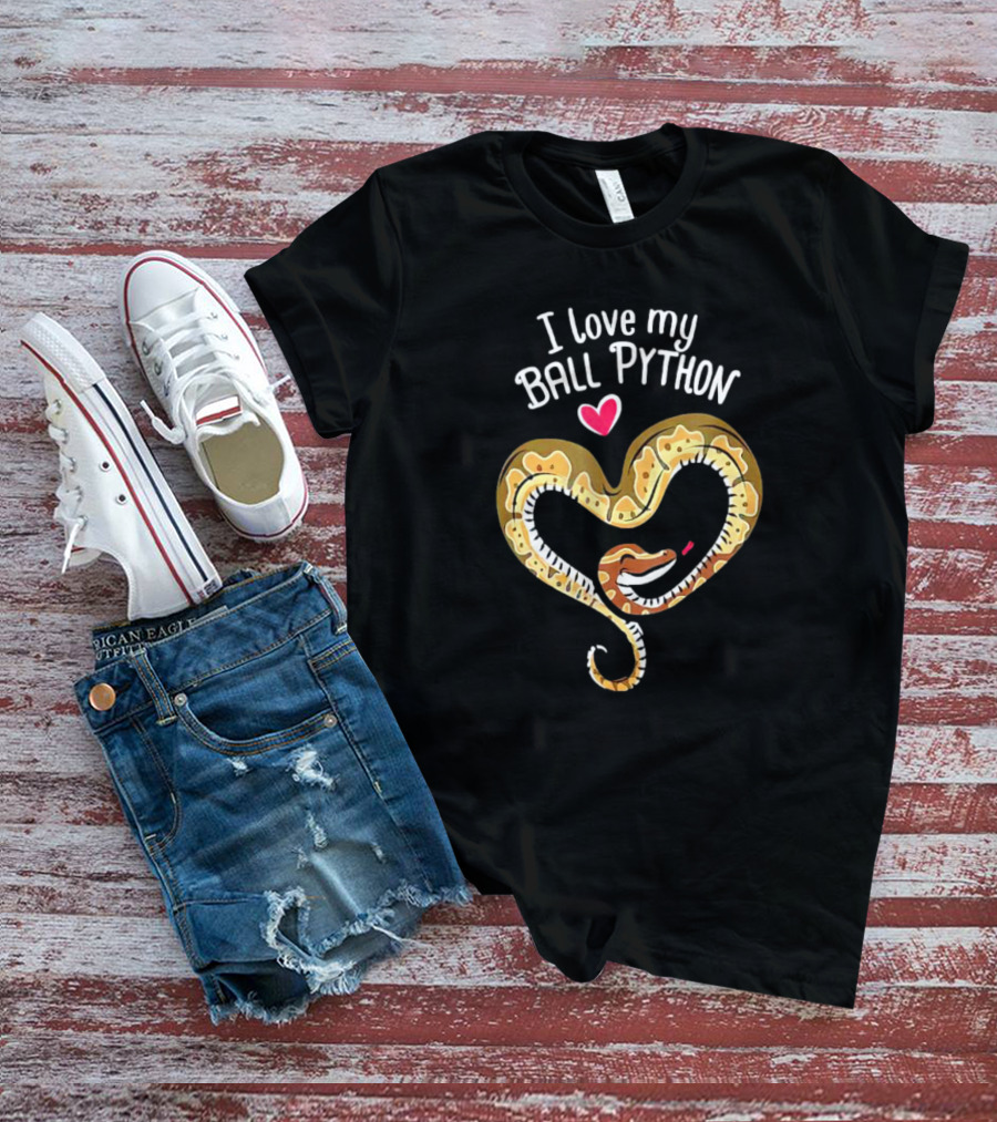 I Love My Ball Python Heart Shape With Red Heart T-Shirt