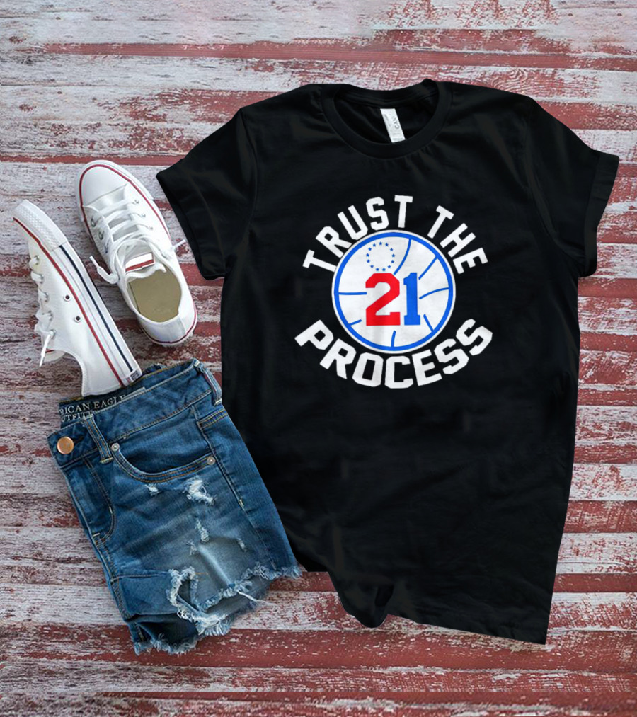 Philadelphia 76ers Joel Embiid 21 Trust The Process Basketball Emblem T-Shirt