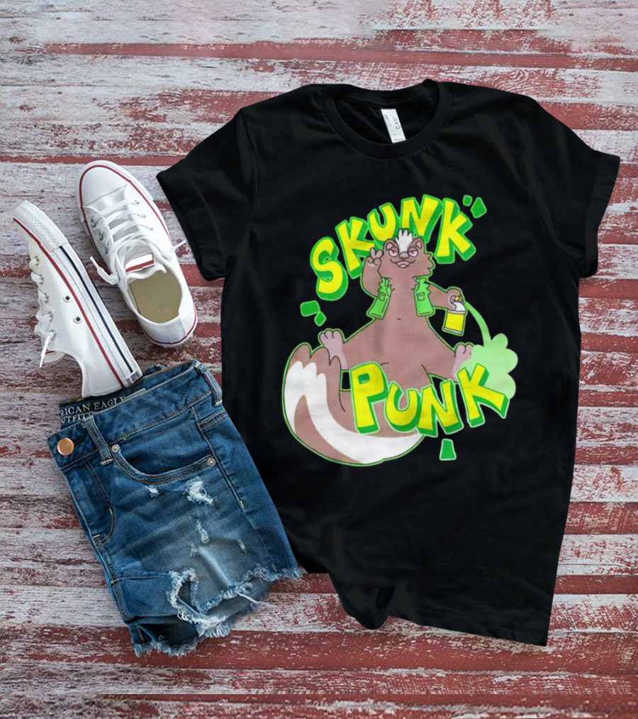 SKUNK PUNK Green Vest Peace Sign Paint Can T-Shirt