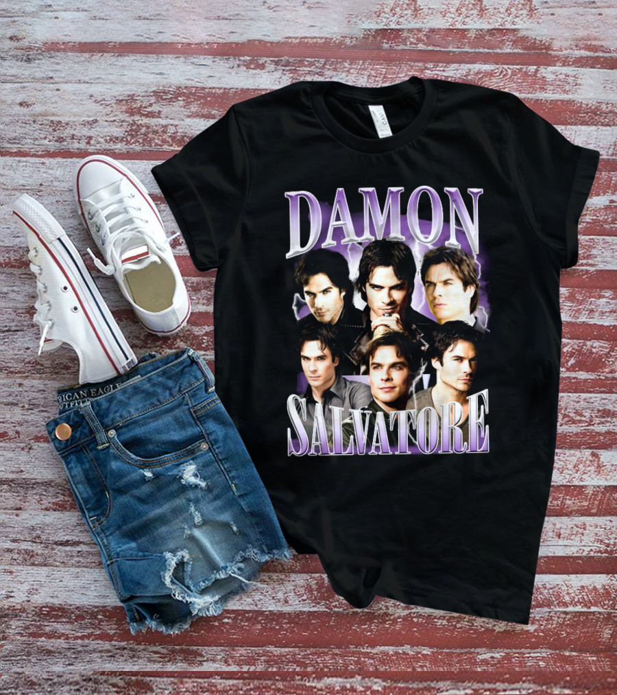 Damon Salvatore Purple Lightning Faces Collage T-Shirt