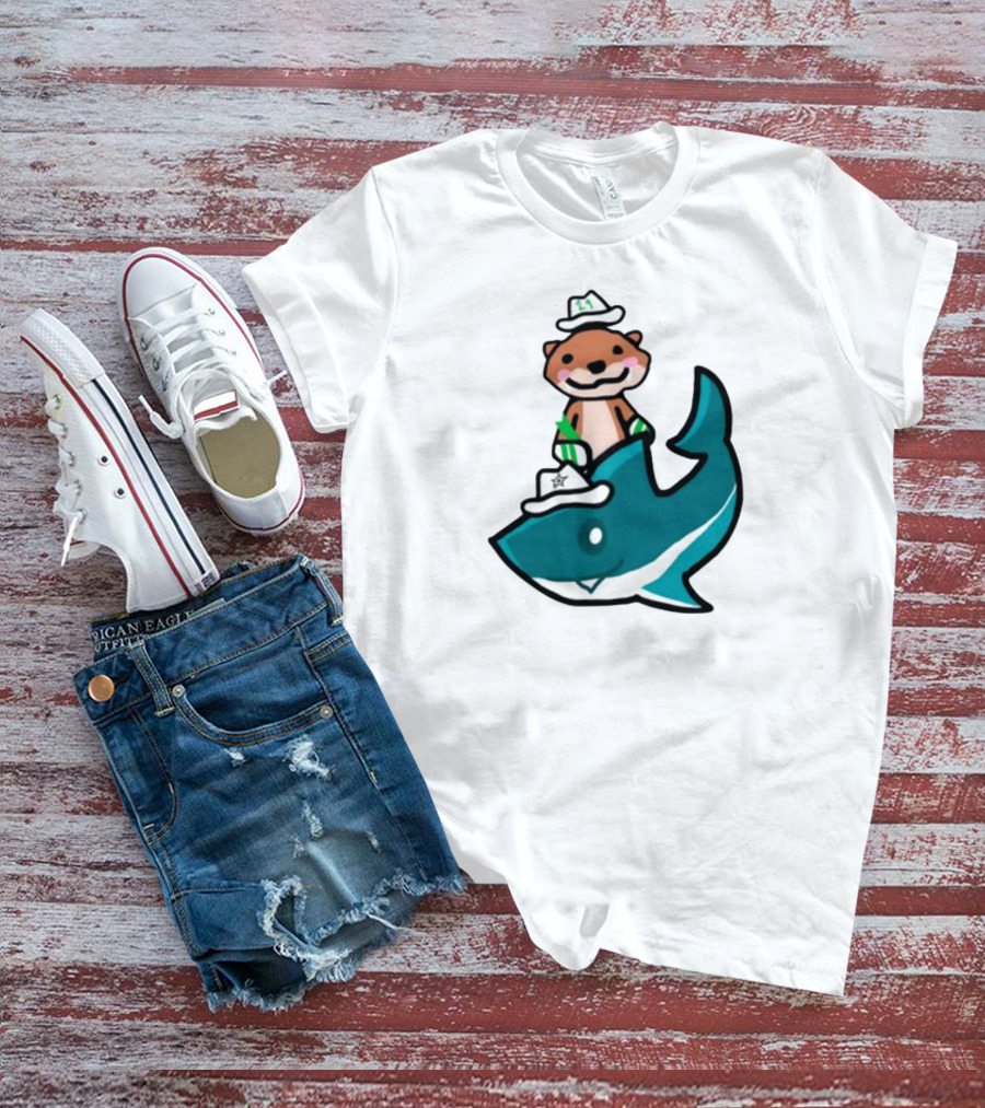 Jake Otter Shark Captain Otter Riding Shark T-Shirt