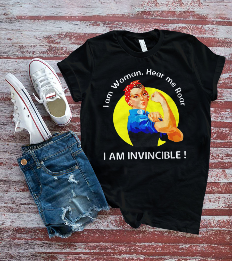 I Am Woman Hear Me Roar I Am Invincible Rosie The Riveter Empowerment T-Shirt
