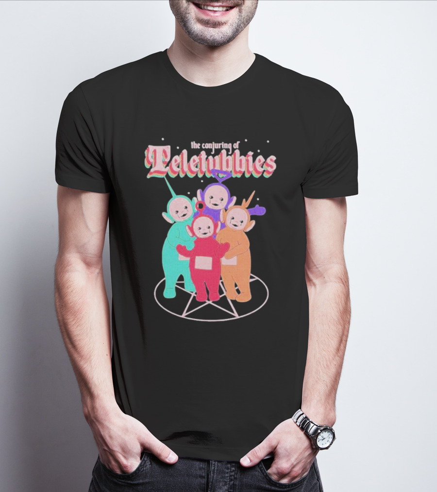 The Conjuring Of Teletubbies On Pentagram Background T-Shirt