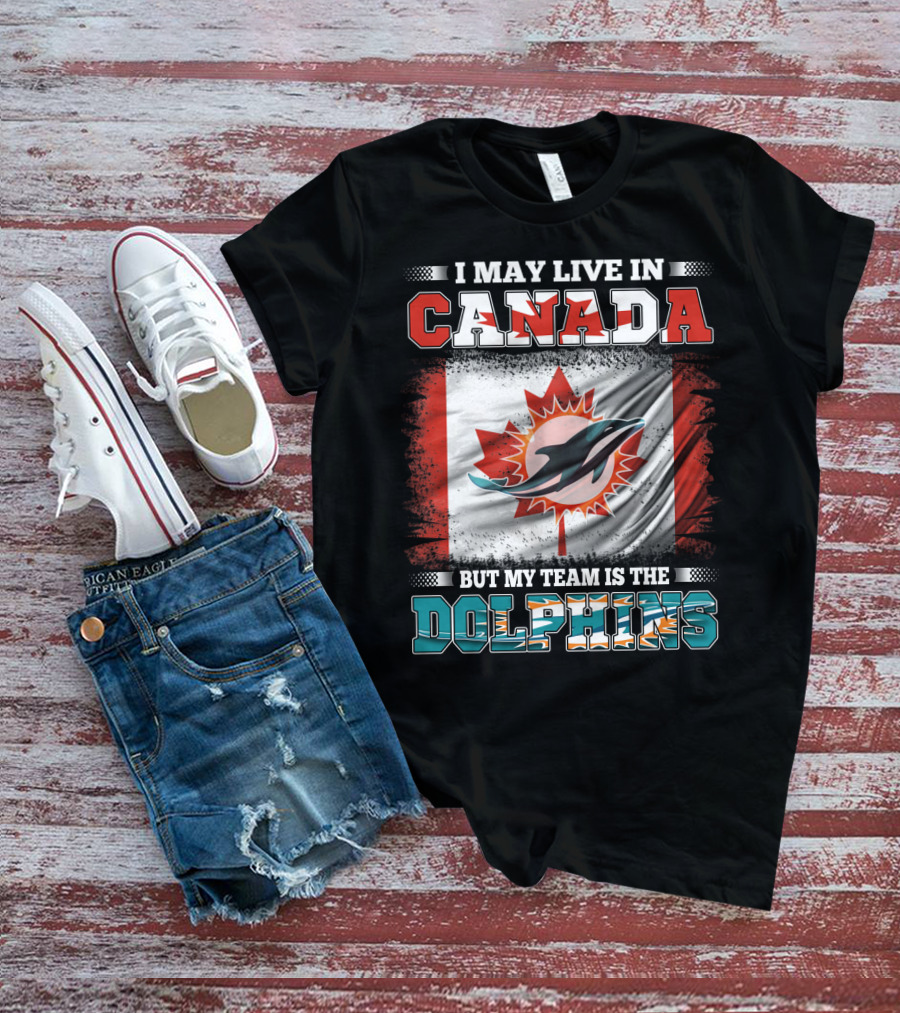 I May Live In Canada But My Team Is The Dolphins Canada Flag T-Shirt