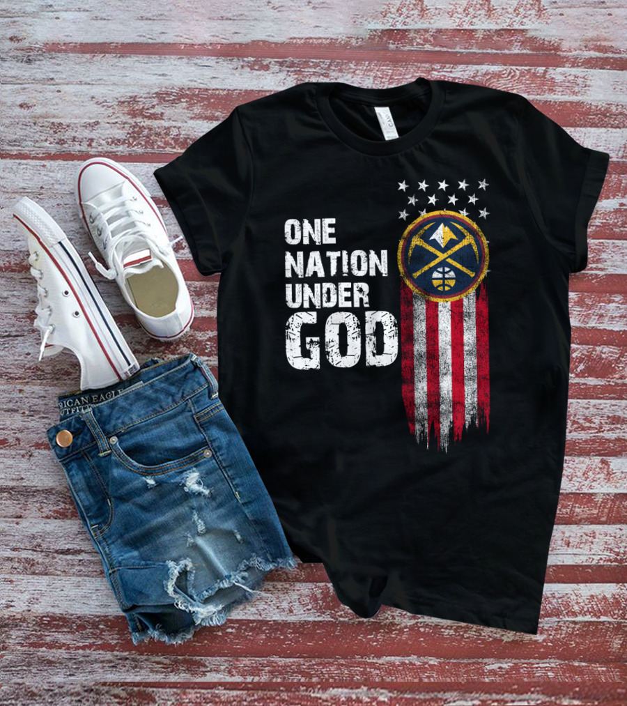The One Nation Under God Denver Nuggets Logo Flag Stars Shirt offers a regular fit. Made from 100% ring-spun cotton that is pre-shrunk to help maintain size and shape after washing. Features reinforced construction details for durability. Available in U.S. standard sizes S-5XL to accommodate various body types.