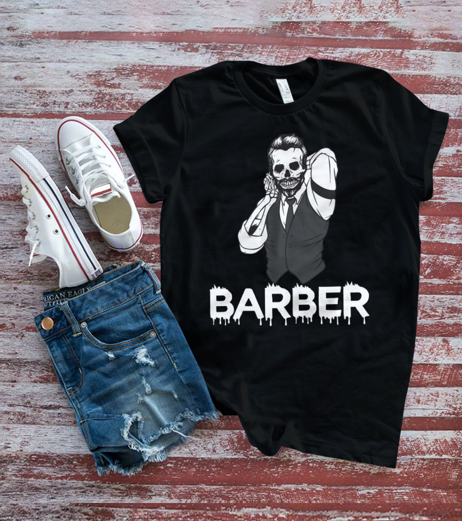 Halloween Barber Skeleton Hairstylist T-Shirt