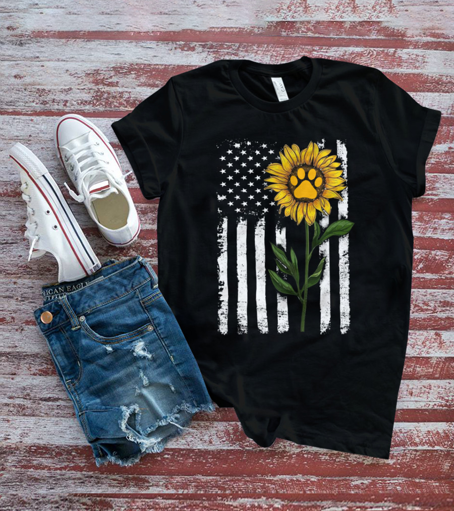Sunflower Paw American Flag Vertical Stripes T-Shirt