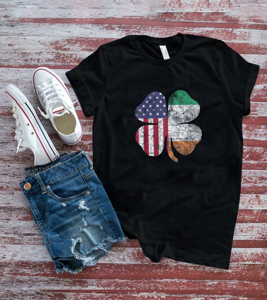 Irish American Flag Shamrock With Stars And Stripes And Tricolor Elements T-Shirt