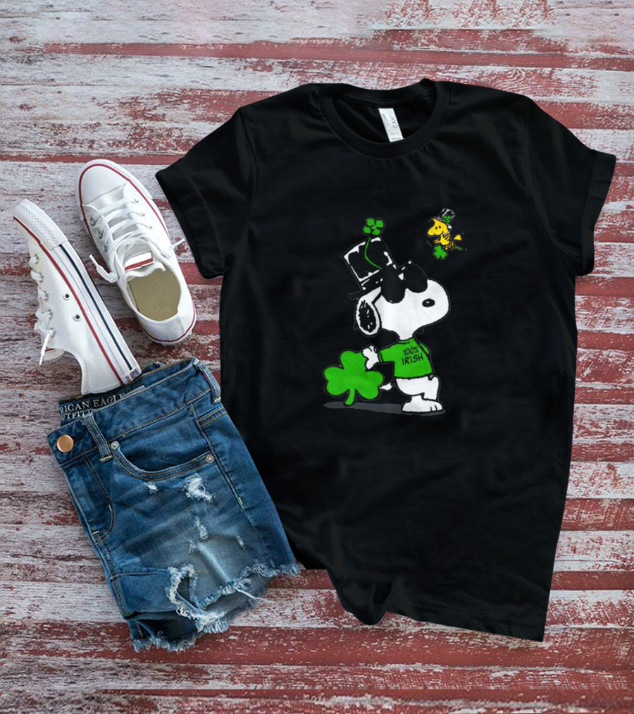 Snoopy Kiss Me 100% Irish St Patrick's Day Shamrock Hat Woodstock T-Shirt