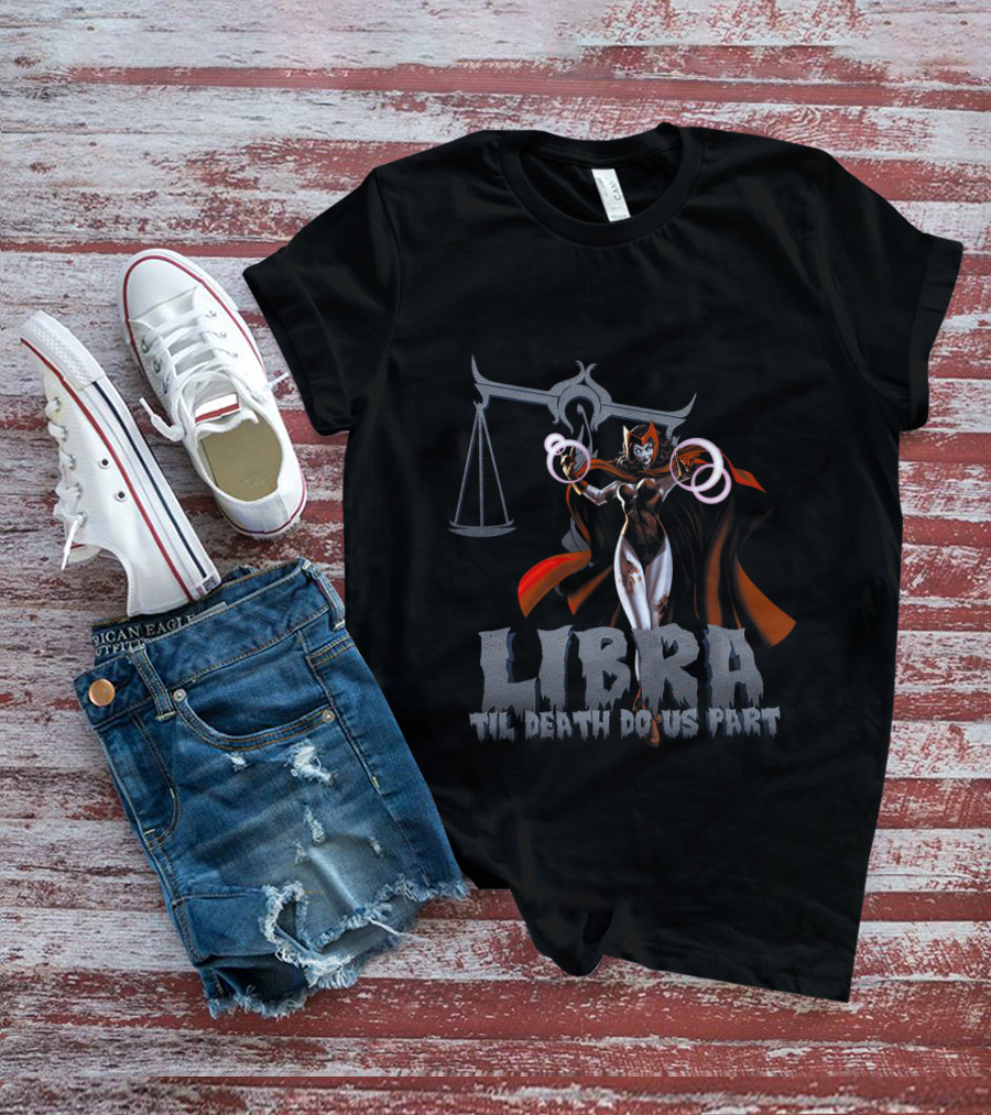 The Libra Til Death Do Us Part Scarlet Witch Marvel Fans Shirt offers a regular fit. Made from 100% ring-spun cotton that is pre-shrunk to help maintain size and shape after washing. Features reinforced construction details for durability. Available in U.S. standard sizes S-5XL to accommodate various body types.