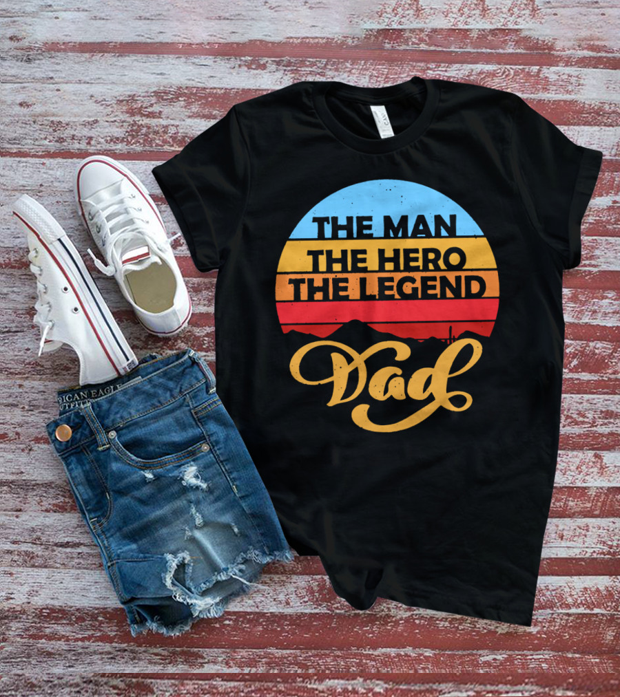 The The Man The Hero The Legend Dad Retro Shirt offers a regular fit. Made from 100% ring-spun cotton that is pre-shrunk to help maintain size and shape after washing. Features reinforced construction details for durability. Available in U.S. standard sizes S-5XL to accommodate various body types.