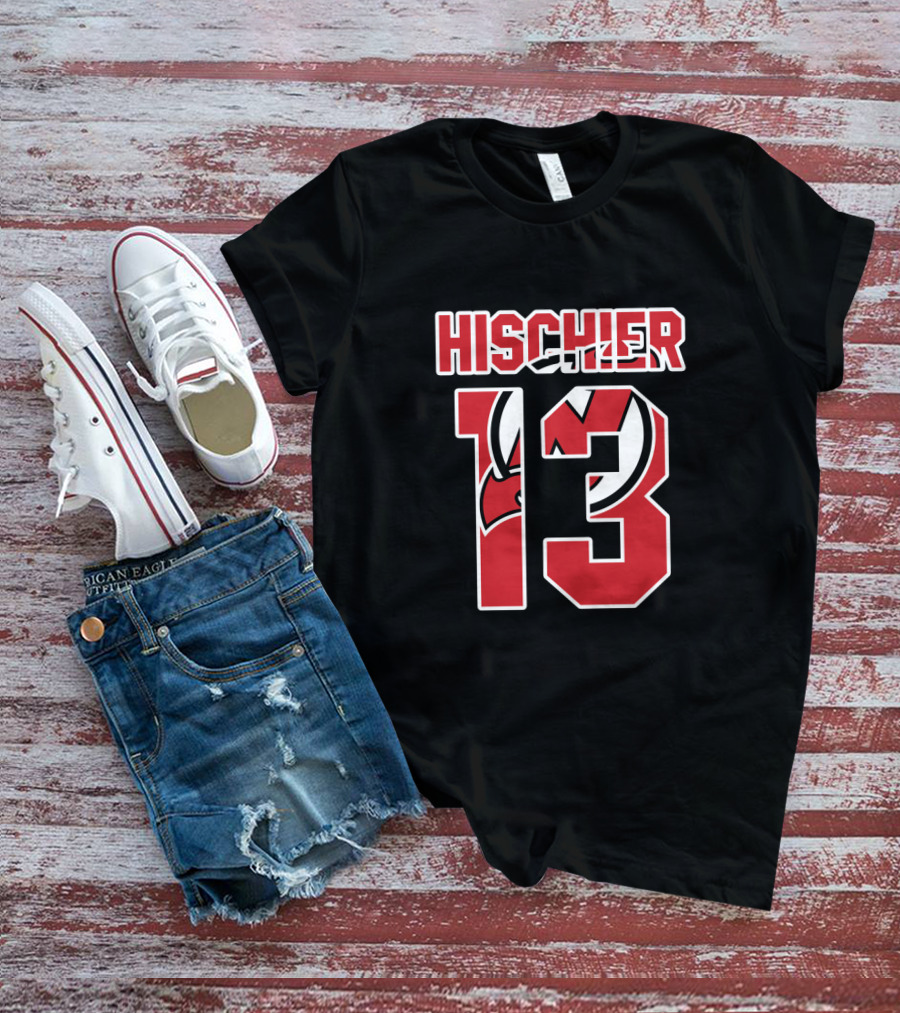 Hischier 13 New Jersey Devils NHL Logo Analysis T-Shirt