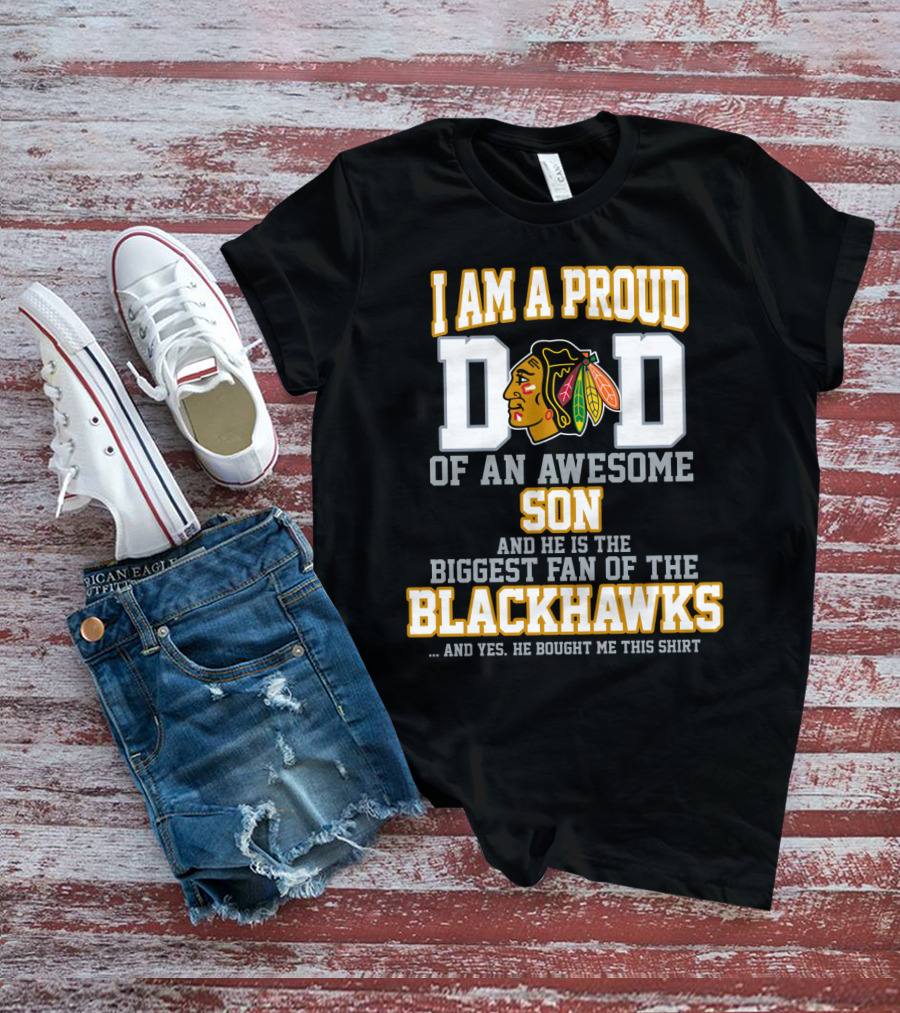 I Am A Proud Dad Of An Awesome Son And He Is The Biggest Fan Of The Blackhawks T-Shirt