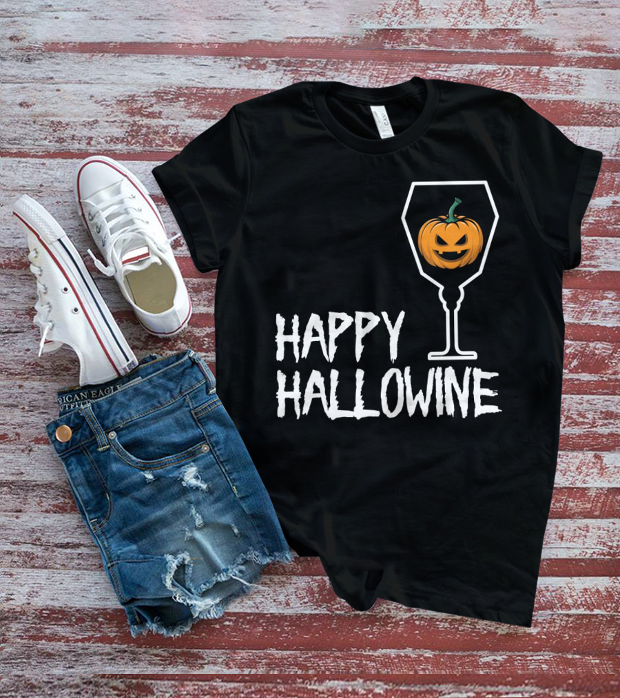 Happy Hallowine Jack-o'-Lantern Wine Glass Halloween Drinking Lover T-Shirt