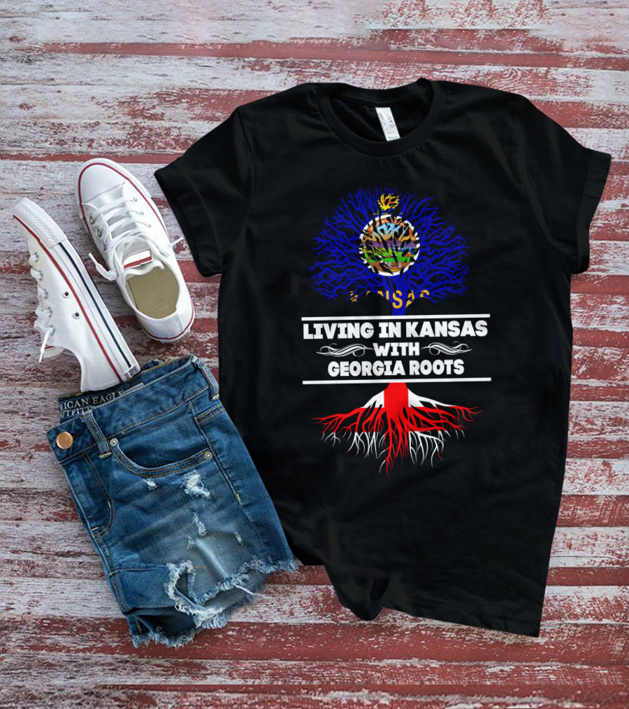Kansas Living With Georgia State Roots Tree T-Shirt