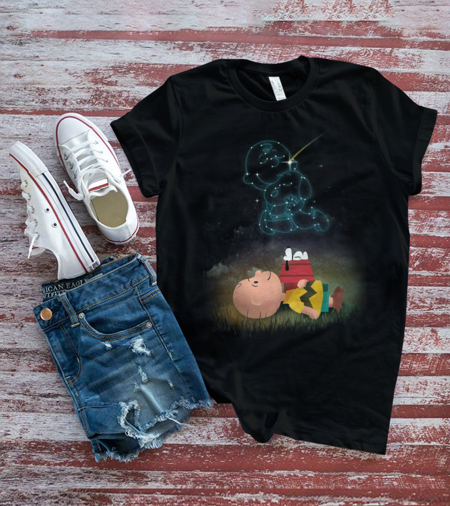 Charlie Brown And Snoopy Celestial Stargazing Night Constellation Scene T-Shirt