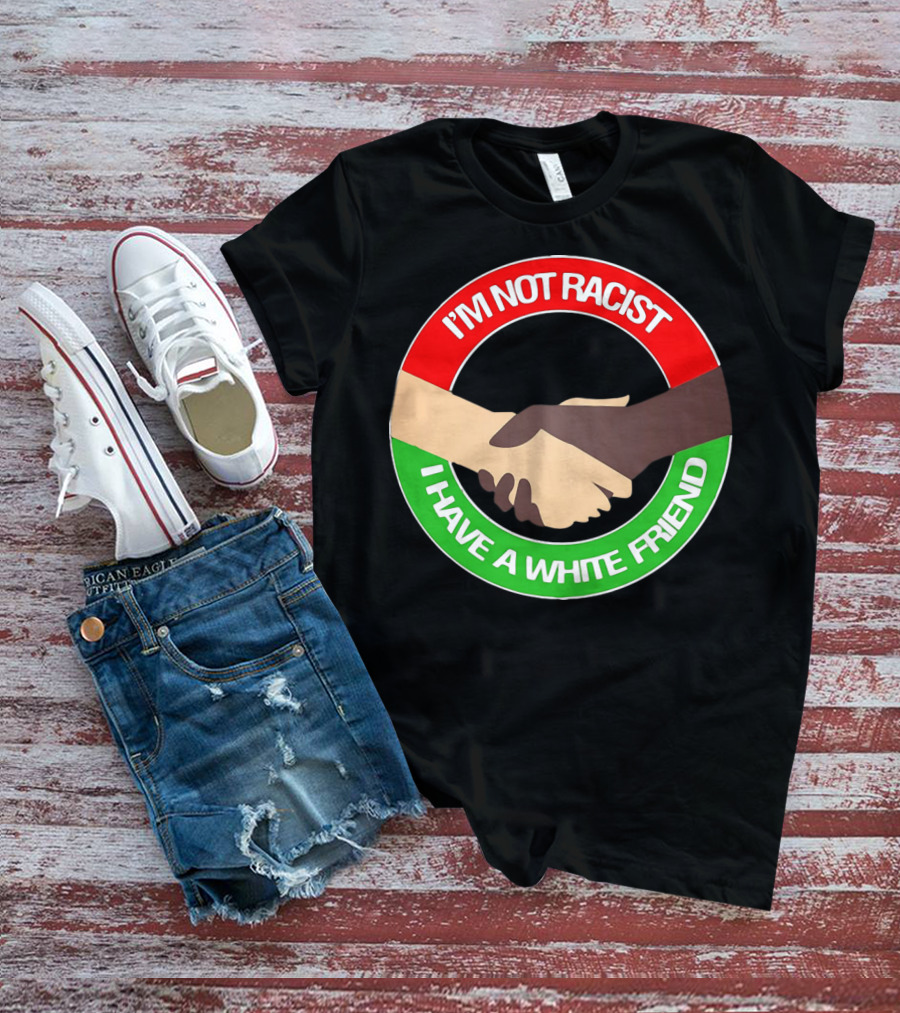 I'm Not Racist I Have A White Friend Handshake Circle Red Green Background T-Shirt