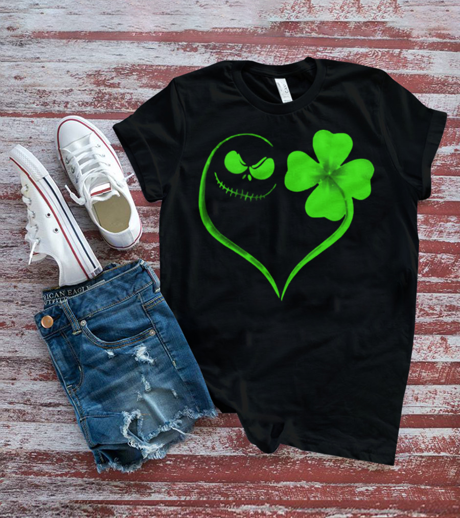 Jack Skellington Heart With Shamrock For St. Patrick's Day T-Shirt