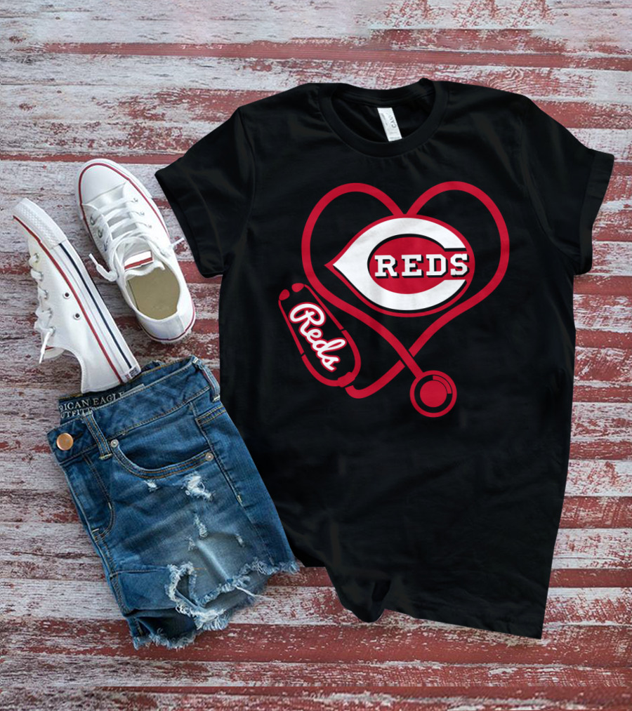 Cincinnati Reds Heart Stethoscope Nurse Fan Gear T-Shirt