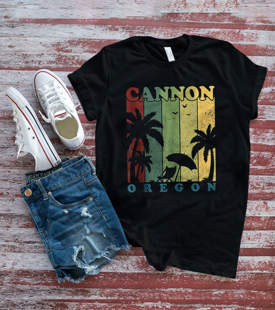 The Cannon Beach Oregon Summer Vacation Landscape with Palm Trees and Sunset Shirt offers a regular fit. Made from 100% ring-spun cotton that is pre-shrunk to help maintain size and shape after washing. Features reinforced construction details for durability. Available in U.S. standard sizes S-5XL to accommodate various body types.