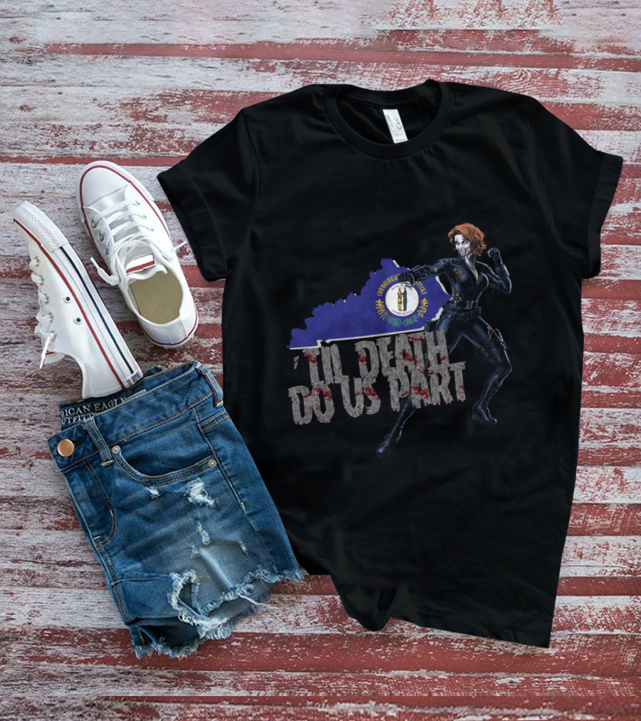 Til Death Do Us Part Black Widow Kentucky State Flag T-Shirt