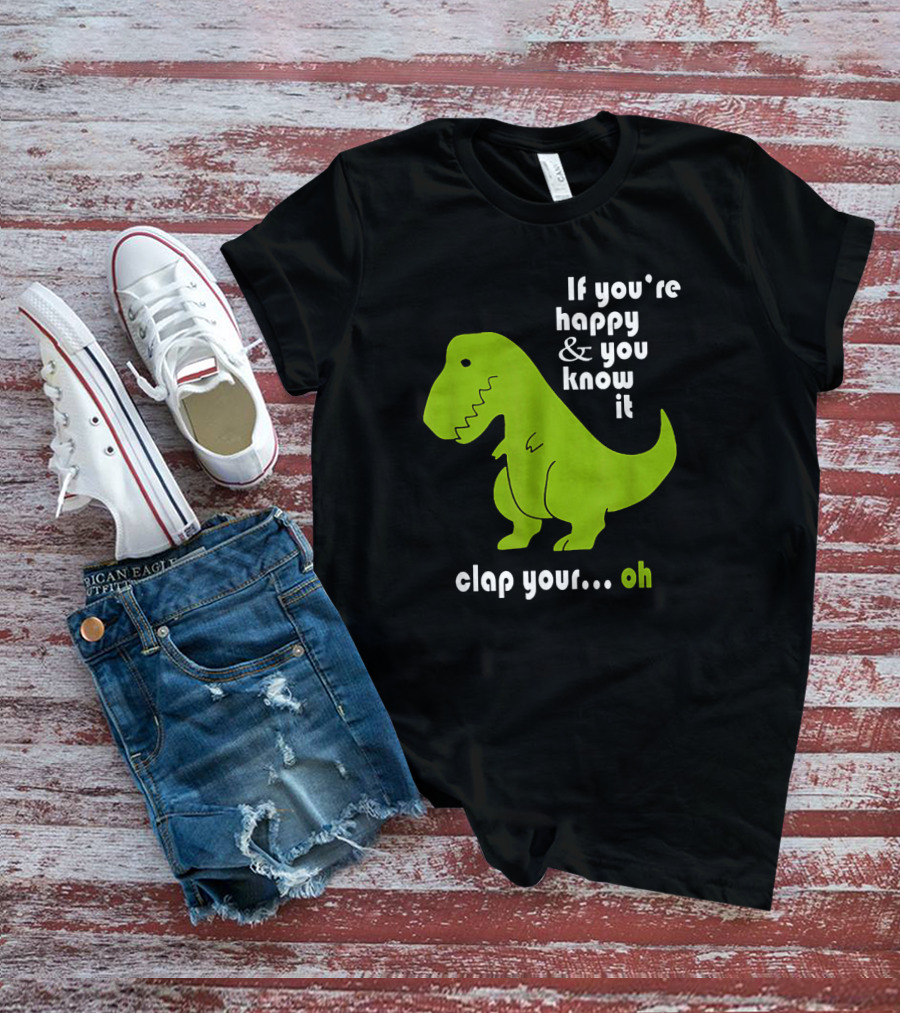If You're Happy And You Know It Clap Your Oh Dinosaur Joke With Humor Green T-Rex T-Shirt