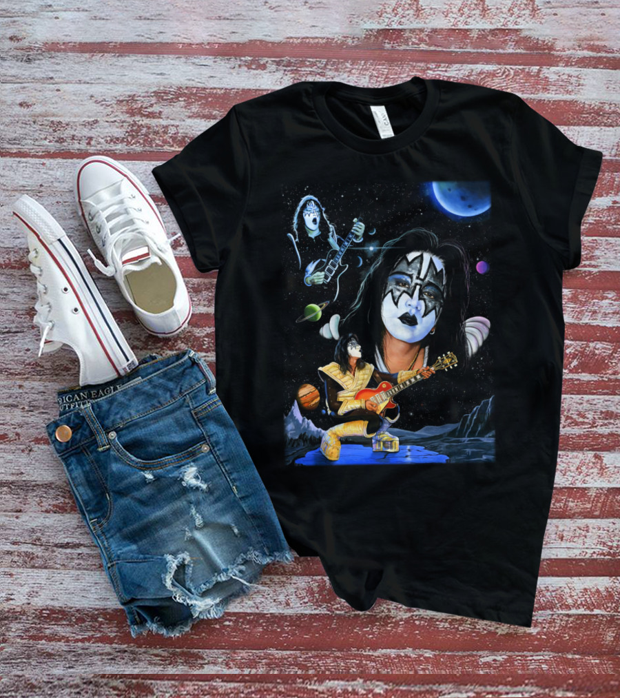 The Ace Frehley Kiss Cosmic Rock Guitarist with Space Imagery and Planets Shirt offers a regular fit. Made from 100% ring-spun cotton that is pre-shrunk to help maintain size and shape after washing. Features reinforced construction details for durability. Available in U.S. standard sizes S-5XL to accommodate various body types.