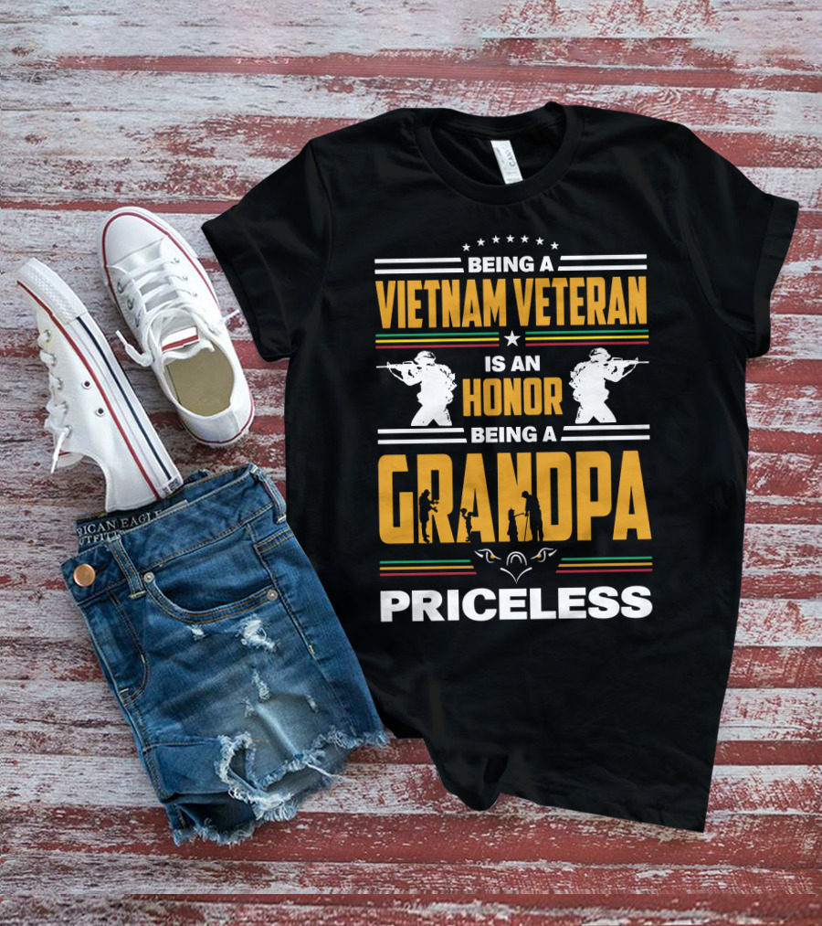 Being A Vietnam Veteran Is An Honor Being A Grandpa Priceless With Soldier Silhouettes And Stars T-Shirt
